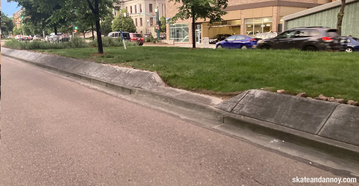 Colorado Springs definitely has skateparks, 2 or 3 I think, but all I had time to see saw was this banked curb in the middle of one of the main drags. This is a spot that would have kept me entertained for hours in 80’s. I probably would have gotten hit by a car, had a board ran over, or at the very least been honked at. I can evasion many a late nights there, I certainly spent time like that at less engaging spots.