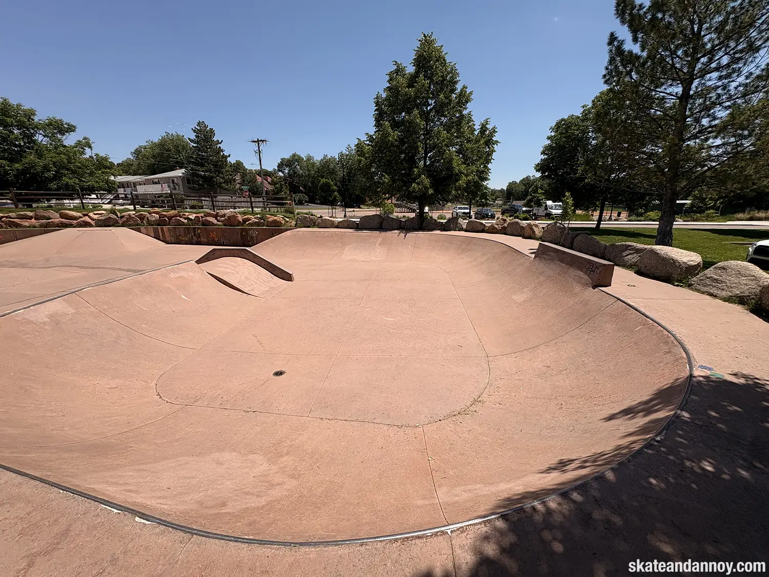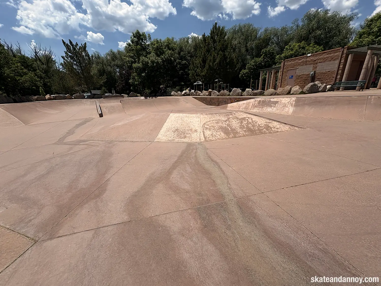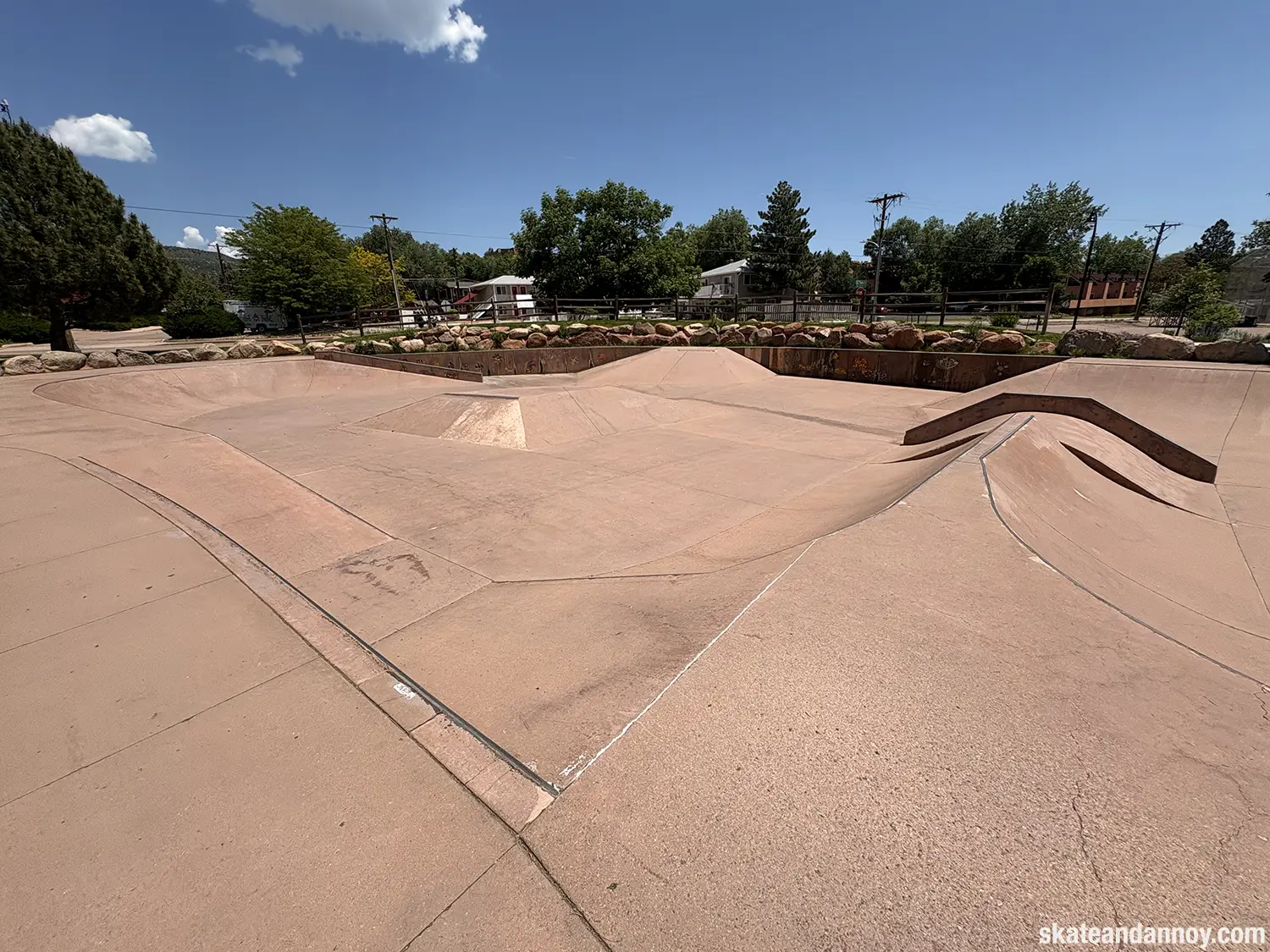 We ended up driving by the Manitou Springs skatepark, so I made the whole family stop while I checked it out. The red cement stands out a bit but doesn’t quite make up for the recessed undersized “noping.” Still, it was fun to roll around a little. The one local there was kind enough to let me try his deck, probably thinking I was going eat shit. I’m not 100% certain but I think the last photo is a mosaic of a dog on a skateboard.