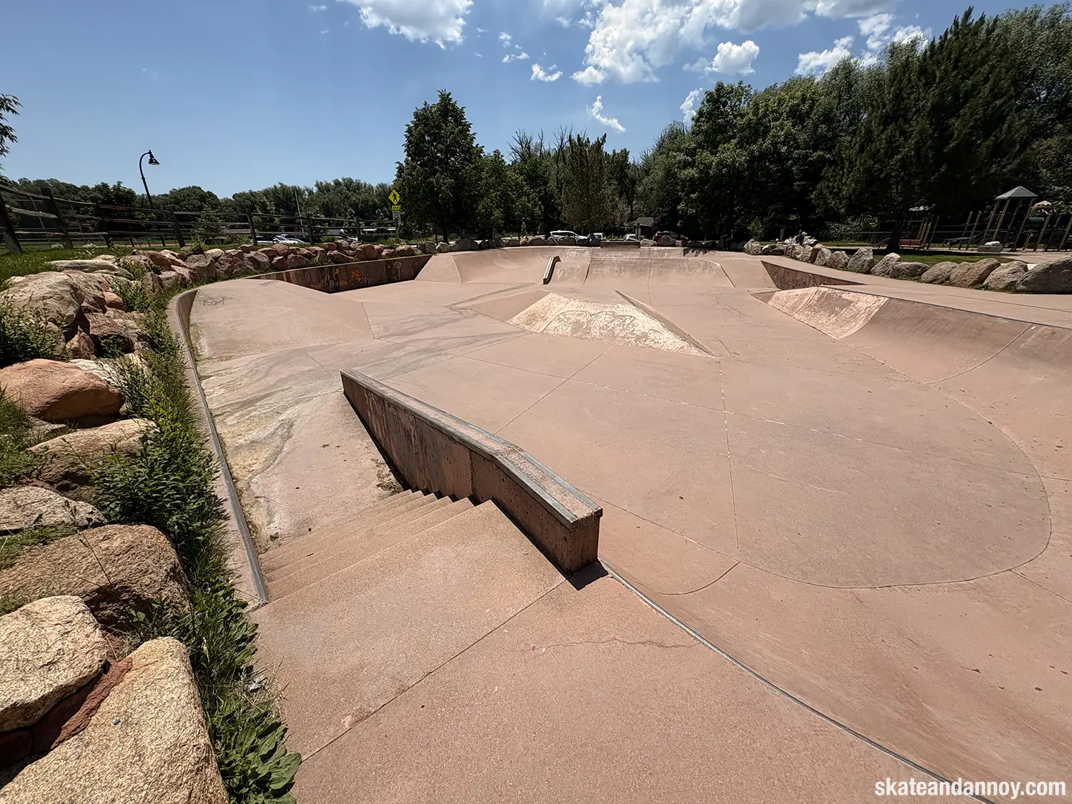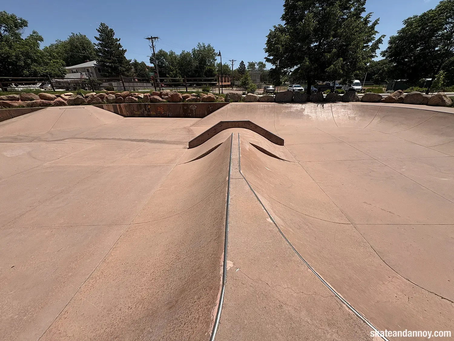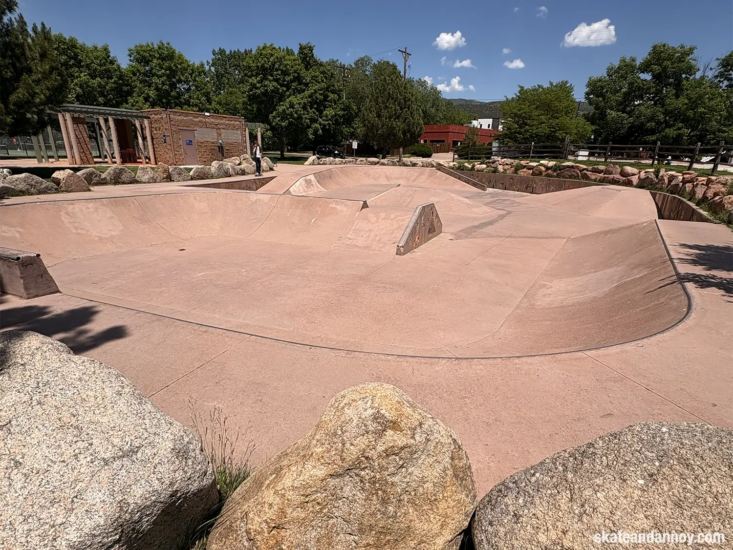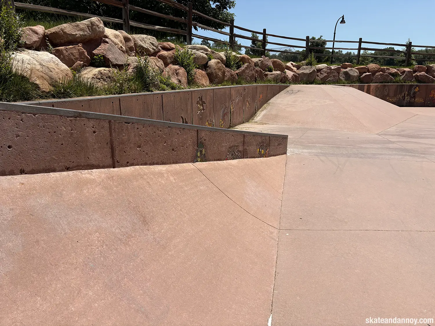 We ended up driving by the Manitou Springs skatepark, so I made the whole family stop while I checked it out. The red cement stands out a bit but doesn’t quite make up for the recessed undersized “noping.” Still, it was fun to roll around a little. The one local there was kind enough to let me try his deck, probably thinking I was going eat shit. I’m not 100% certain but I think the last photo is a mosaic of a dog on a skateboard.