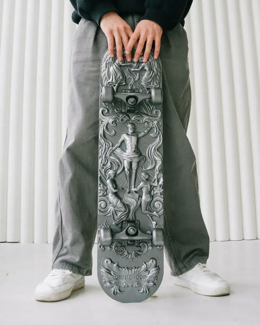 Yes those are two different eras in the post title, but it totally makes sense. For $479 you can buy a skateboard with some 3D printed plastic panels glued onto it and then spray painted in what counts as “over 12 hours of 3D printing and meticulous hand-finishing.” Yes, that face is the face you should be making if someone tries to convince you this is worth almost $500, but you can get yours from Gimme Hoop in one of 3 finishes. If you buy one, friends will ask where you found it and admire your taste.