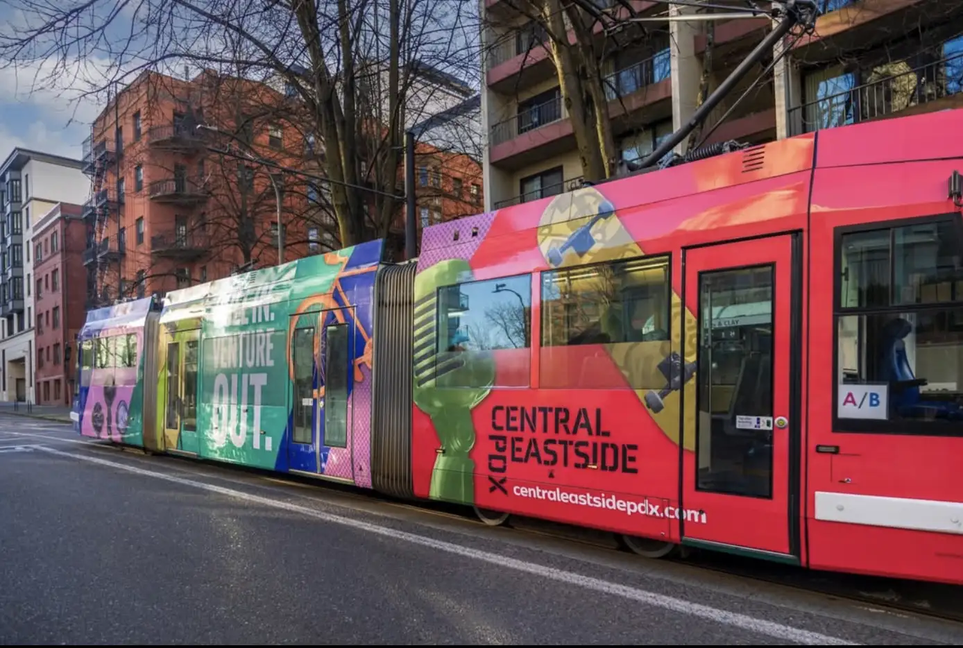 UPDATE: Here’s a photo from their Instagram feed showing a skateboard decorating the side of a Tri-Met light rail train.