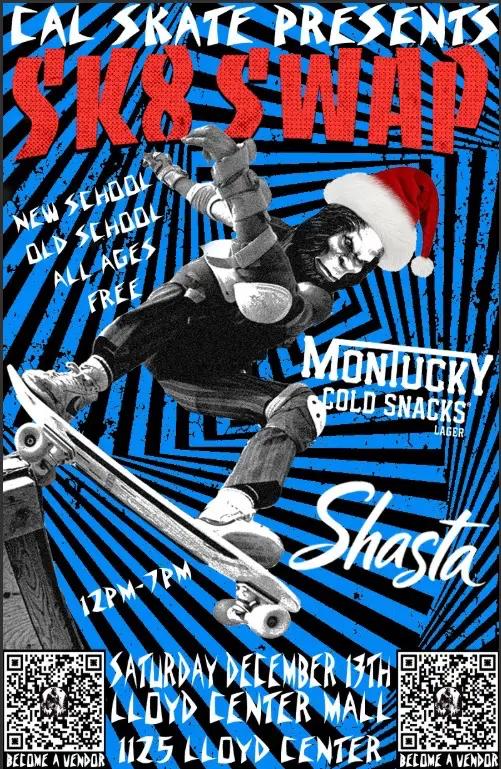 Come buy my skateboard related crap at Sk8 Swap 3 so my kids don’t have to throw it away when I die. Skateboards, toys, t-shirts, zines, all the kinds of stuff I feature on Skate and Annoy. This Saturday from 12-7 at Loyd Center Mall in Portland. Special guest appearance by the Colonel! Sk8 Swap is put on by the good folks at Cal Sk8 and Chris Nukala. I went last year as a spectator and loved it. Tons of foot traffic, music, lots to see. Last year featured one of the Godoy brothers in a tattoo booth. I can’t remember if it was Art or Steve, I didn’t arrive until after they had left.
