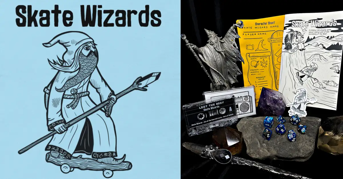 In addition to the introductory module, there’s also an expansion campaign titled Skate Wizards II: Domed City. The game is available at select game stores as well as online at Skatewizards on Big Cartel. The online presence is a little loosey goosey too. You have to go to a different store to get the t-shirts, and if you’re in the mood to save a little money, an entirely different one to get the PDF downloads.