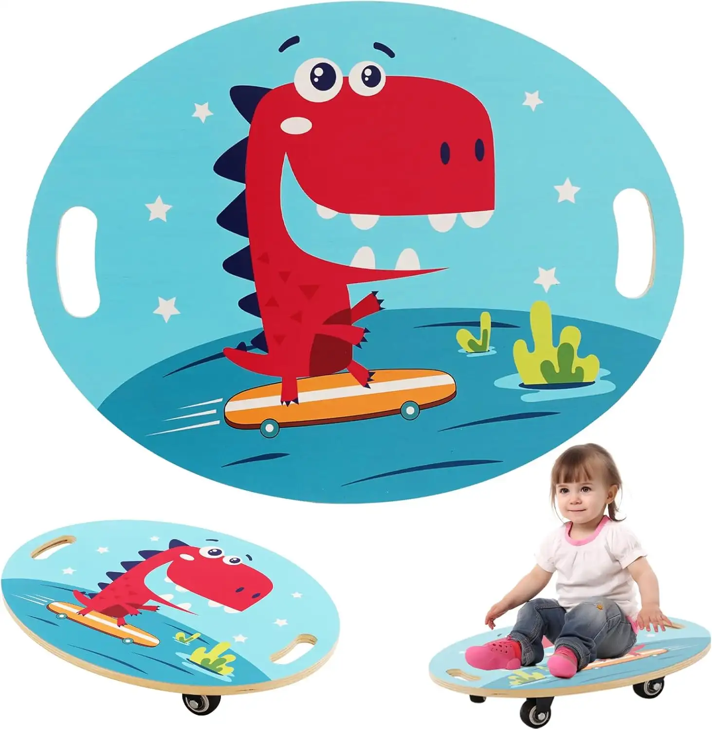 How long will it be before AI robs us of hilarious translations for cheap Chinese products? It’s entirely possible that “Interactive fun happy parent-child time” makes sense. There’s always “It is not easy to swing even in situations of eccentricity or weight change” to fall back on. I love that the top graphic on this coaster board is a happy dinosaur riding a skateboard. This mostly looks like a good way to hurt a small child. If you want to hurt a small child you can buy one of these on Amazon. The product title includes “skateboard” but the description has a more catch name, a rebalancing board.