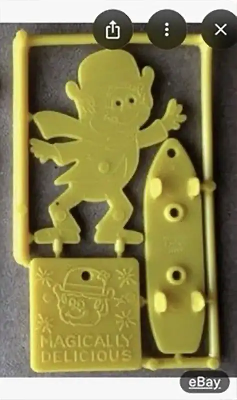 I spaced on today being St. Patrick’s day, so good thing I’m sitting at home while wearing almost all red (no red hats for sure though….) So happy coincidence or dare I say lucky that I have a post full of lucky charms items for you today. Either that or I failed to read any of the text on Weird Paul’s post today. Regardless, I ended up down a rabbit hole again. Here’s some wholesome, sugar blasted goodness from Lucky Charms cereal, and a couple of other St. Patrick’s themed leprechaun bonus items as well.