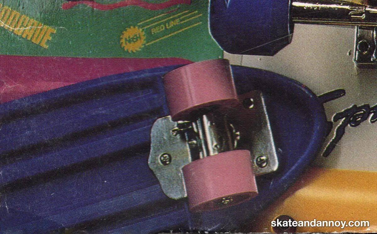 Let’s look at the Goofy Foot. It appears to be the one shown on the front cover in the bottom left hand corner. Looking that truck assembly, it’s probably a holdover from the 70’s. You’d be sorely disappointed if you bought that.
