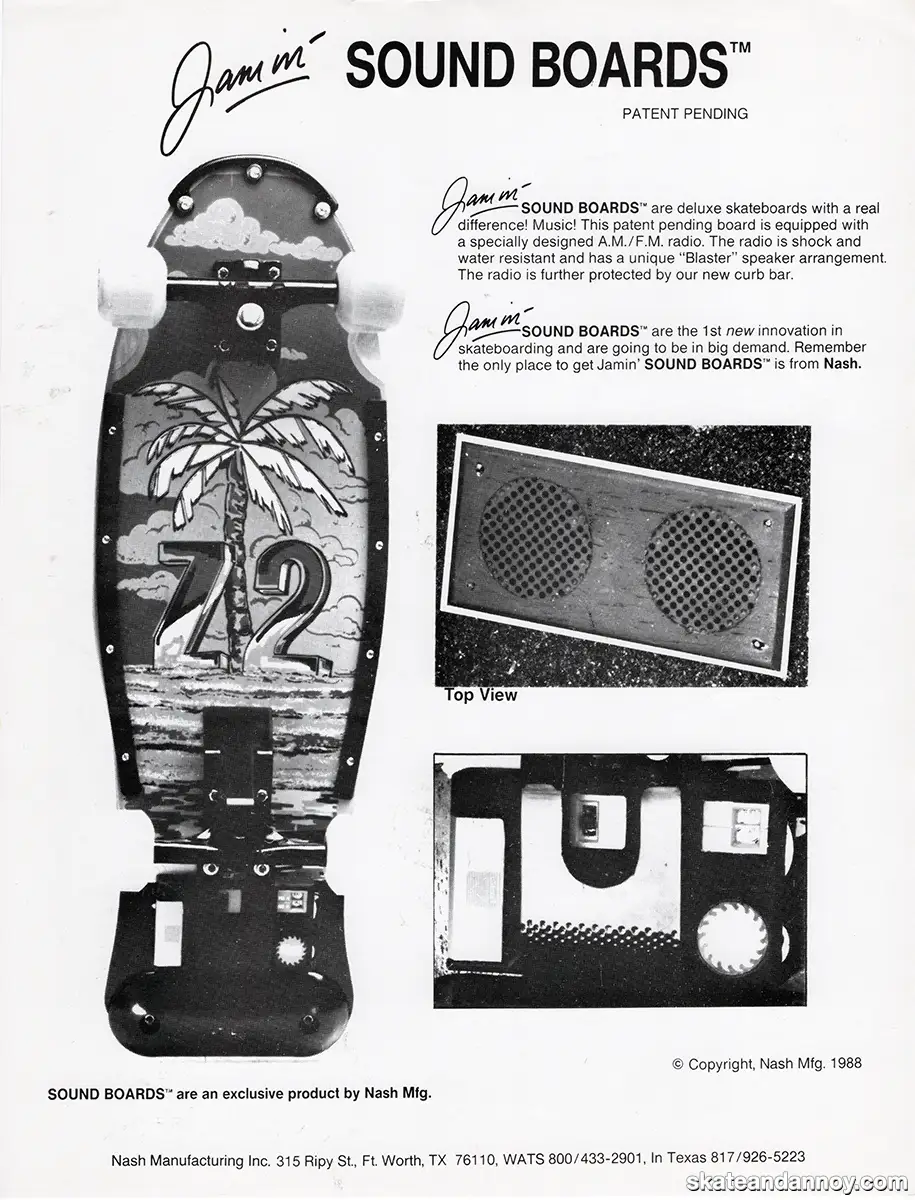 These are the single page inserts that came with the catalog. Check out the Jam’in Sound Board. Graphics aside, this it the 3rd iteration of the Sound Board that I’ve seen. The speaker grill design and possibly the radio casement are different than this version, and the radio unit placement on the tail is different than this one, which is placed behind the front truck. Check out the Globe Speaker Board if you’re interested in a more modern day version of the Sound Board.