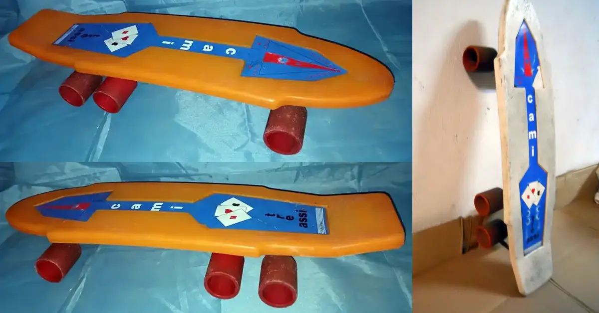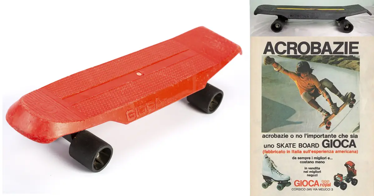 I love a good, weird and crappy skateboard, especially when it’s from a foreign country. To look at these you would think they came from the Eastern Bloc. But no, they came from an Italy and a man named Icaro Olivieri. He was apparently quite an innovator in hockey, and a manufacturer of all kinds of sporting goods under the brand name of GIOCA, which translates to “Play.” I stumbled across one of these while looking for Tres Assi boards. It looks like Gioca might have made real skateboards at some point, but I couldn’t find any picutres outside of the advert in the bottom right corner.