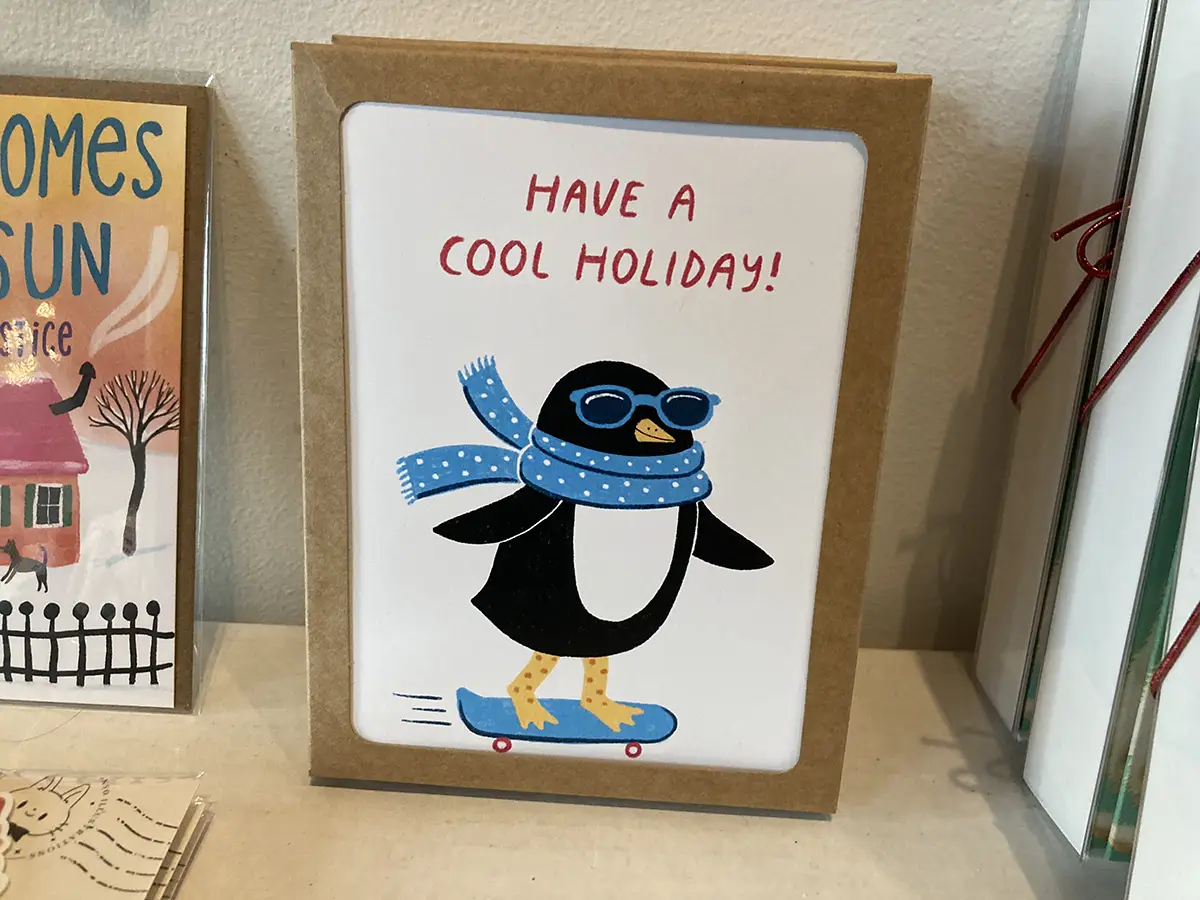 A penguin riding a skateboard is cool. Illustration by Stephanie Brachmann. Get yours at Crafty Wonderland or Etsy. Have a cool holiday, dear readers.