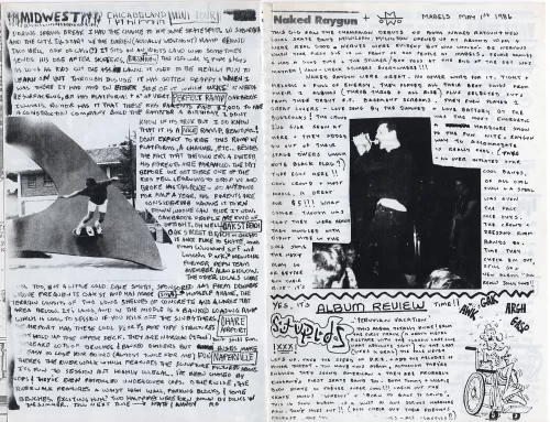 Featuring: UK Scene report (Wow, in first issue!) Competritng hammerhead shapes in product review, street skating on university of Illinois campus, midwest mini tour, review of Naked Raygun show with skate rock band McWilson opening – (unbiased, I’m sure, as both S&A editors were in McWilson, and McWilson was created out of thin air to open for Naked Raygun.) Stupids Album review, comics, two sentence interview with Henry Rollins, Neil’s Hate Page.