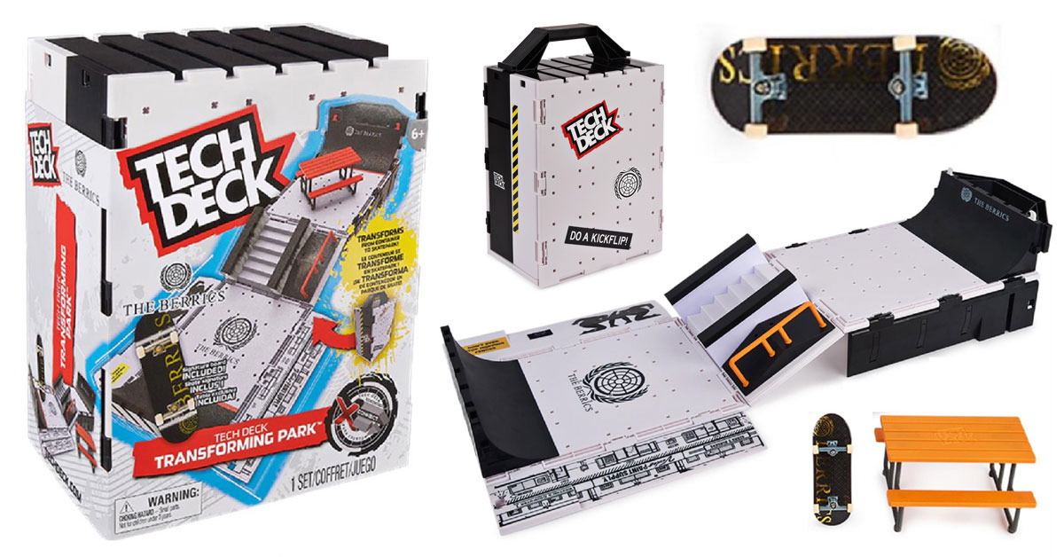 First of all, Tech Decks are still a thing. Based on my casual perusal of the toy aisles over the past 2 decades it appears they were in a slow decline from their heyday in the 2010’s, but they are still out there releasing new products beyond the endless release of popsicle stick graphics from Element and the like. We get a lot of PR mail sent from various companies, and occasionally I’ll actually reply (usually in a flippant manner) something along the lines of “That sounds amazing! Why don’t you send me a (insert Extreme!™ product) for review? Most often times that is met with no response. However, not the case with The Berrics Transforming Park. Join me, dear readers, as I fulfill my implied contractual duty.