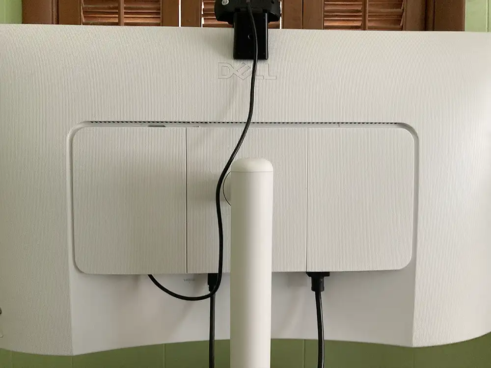 And here is the only bespoke picture for this review. I have a webcam with an insanely long usb cable plugged in. The back left cover pops off and provides ample space to coil up that USB cable and keep it from falling on the desk and getting otherwise tangled. Not shown, there is a ring at the base of the stand in the back for passing your cables through.